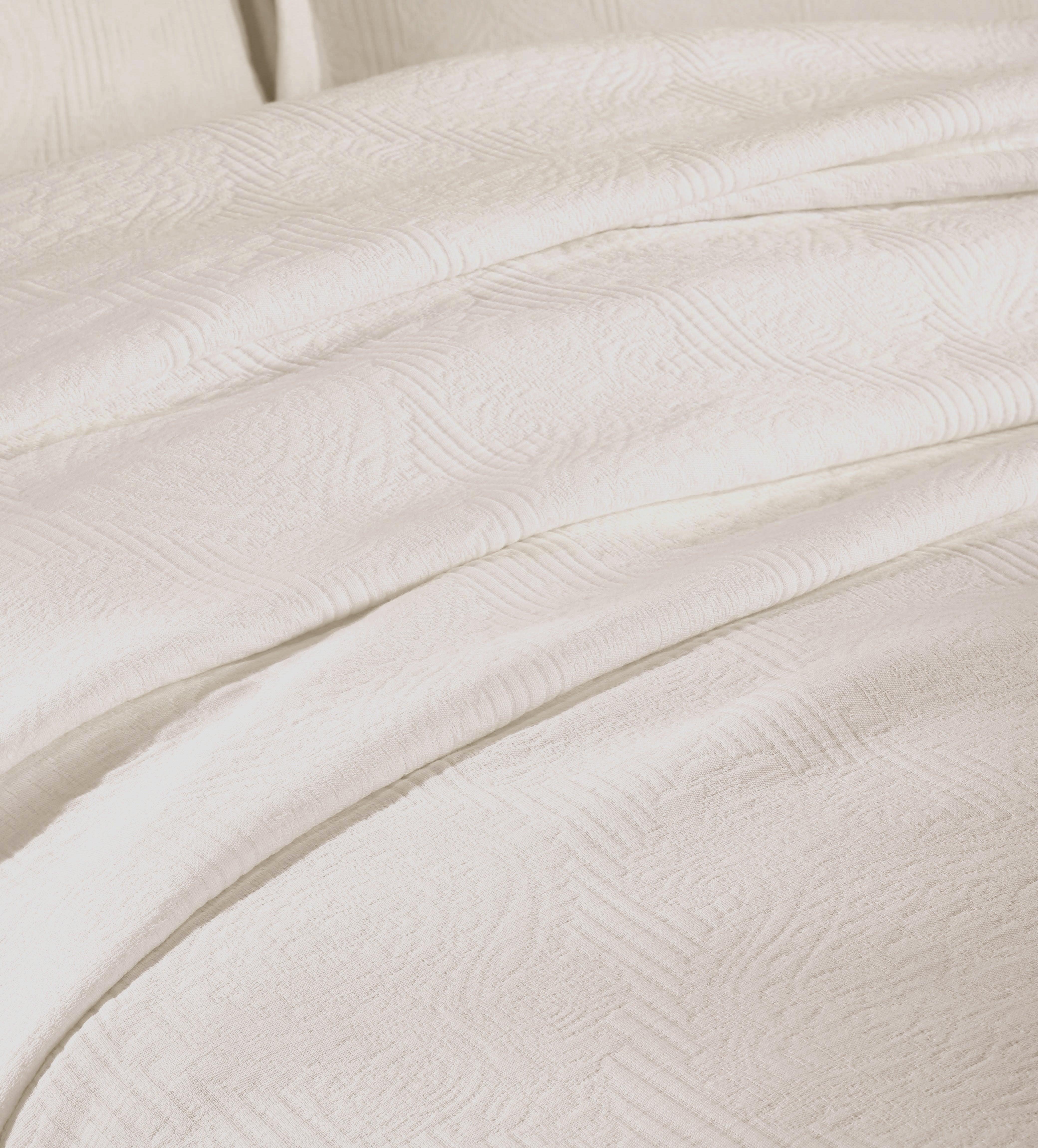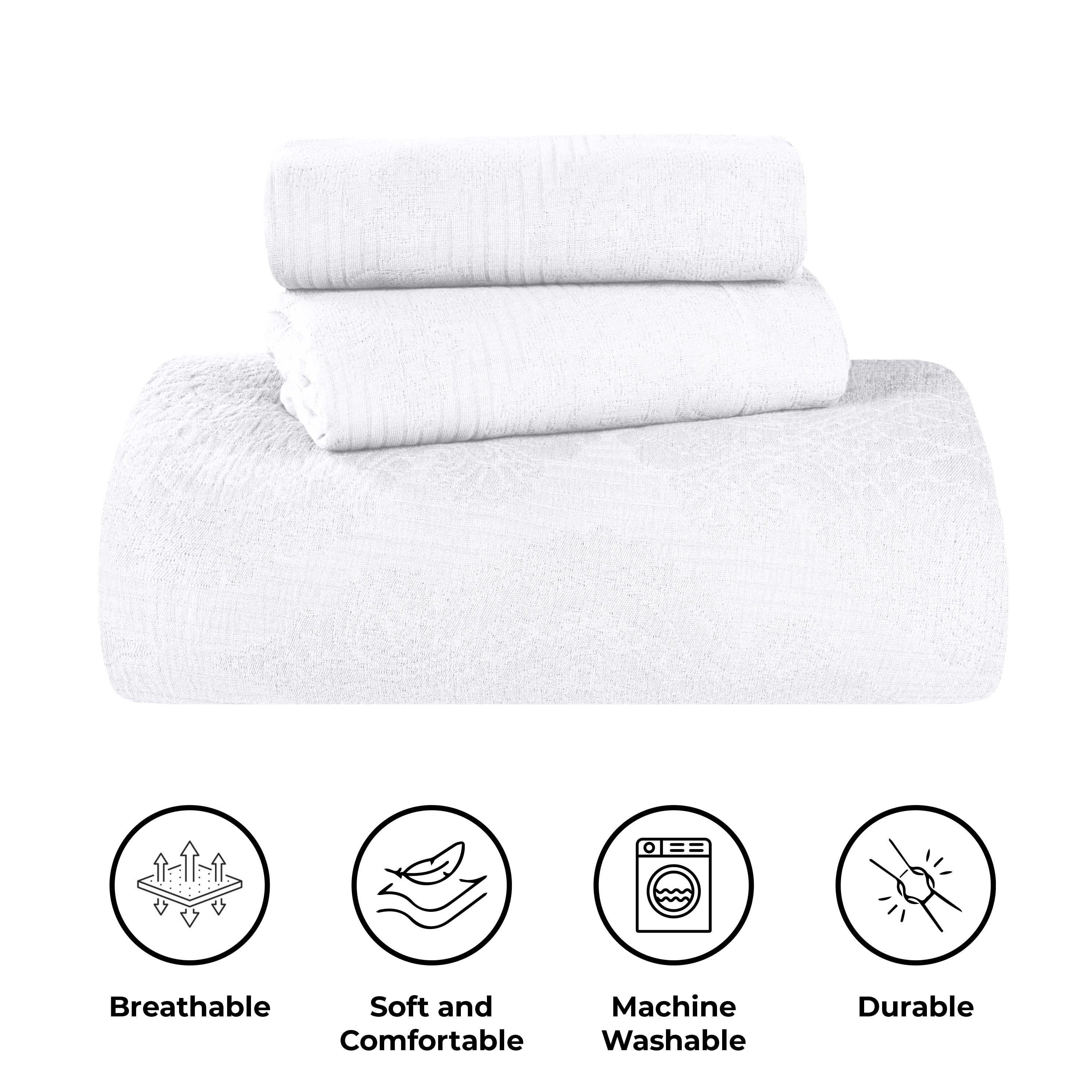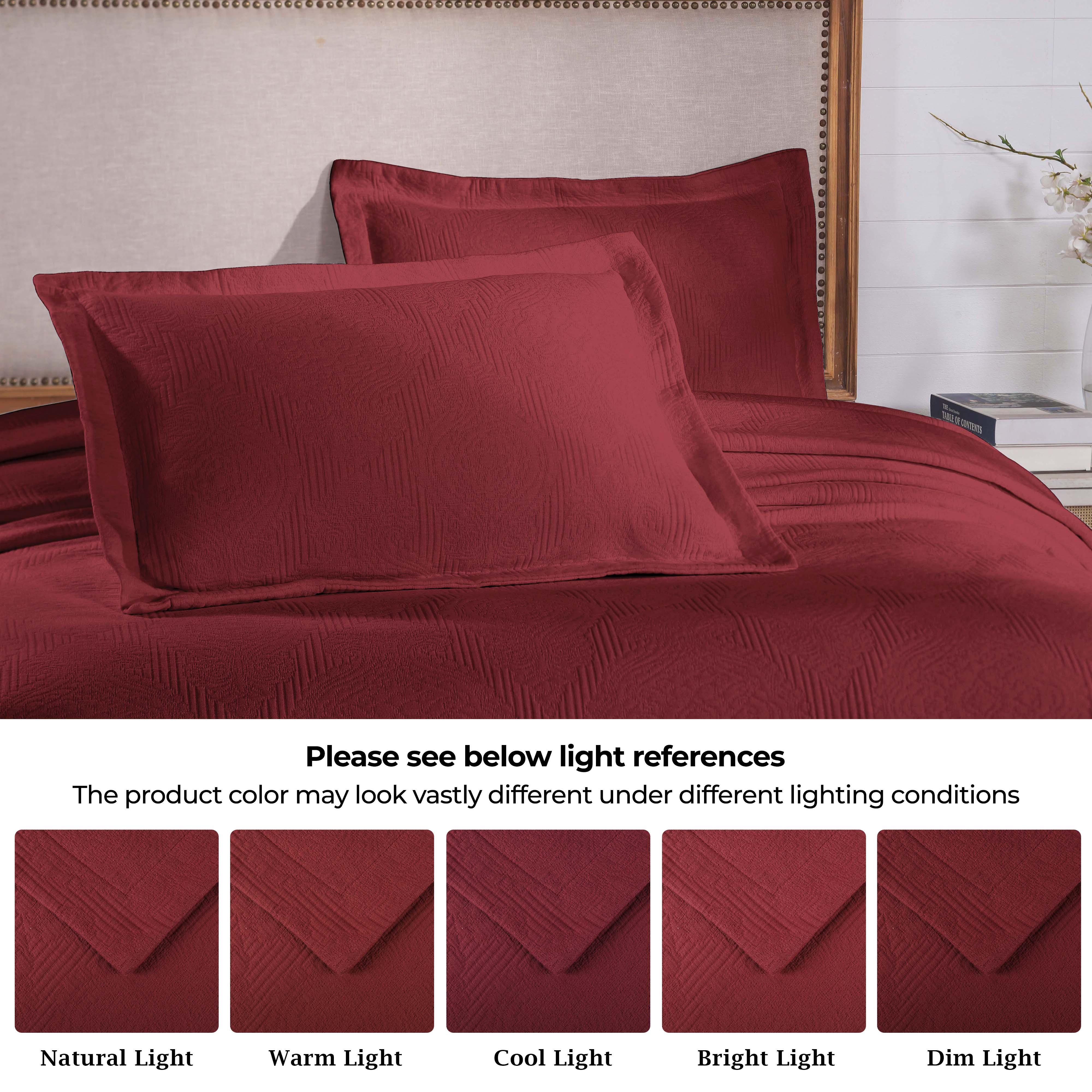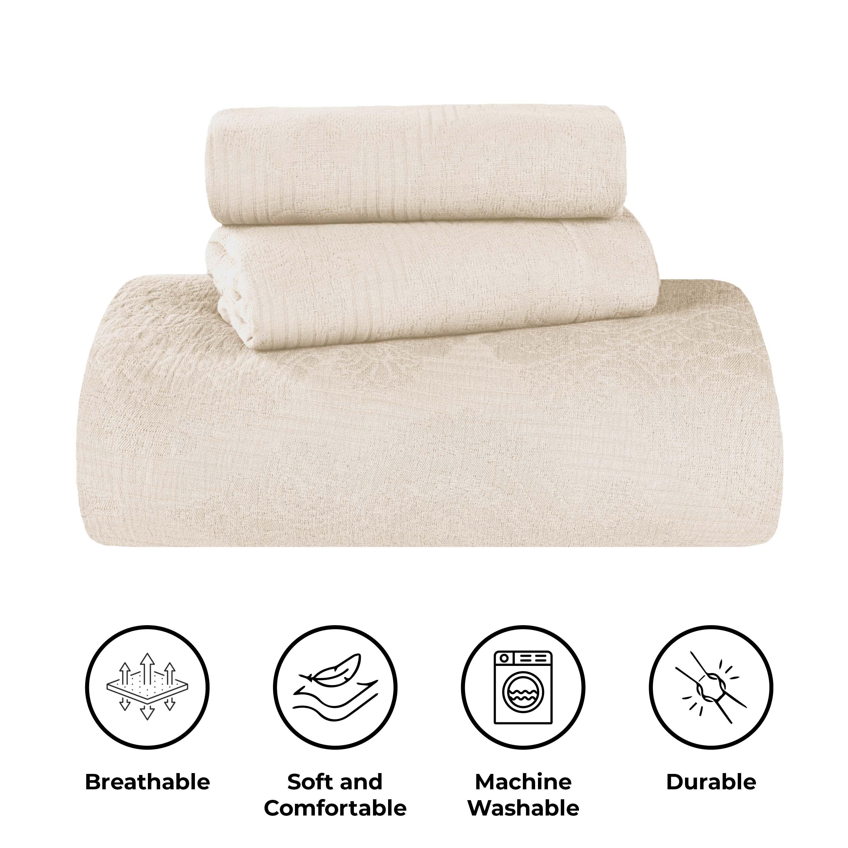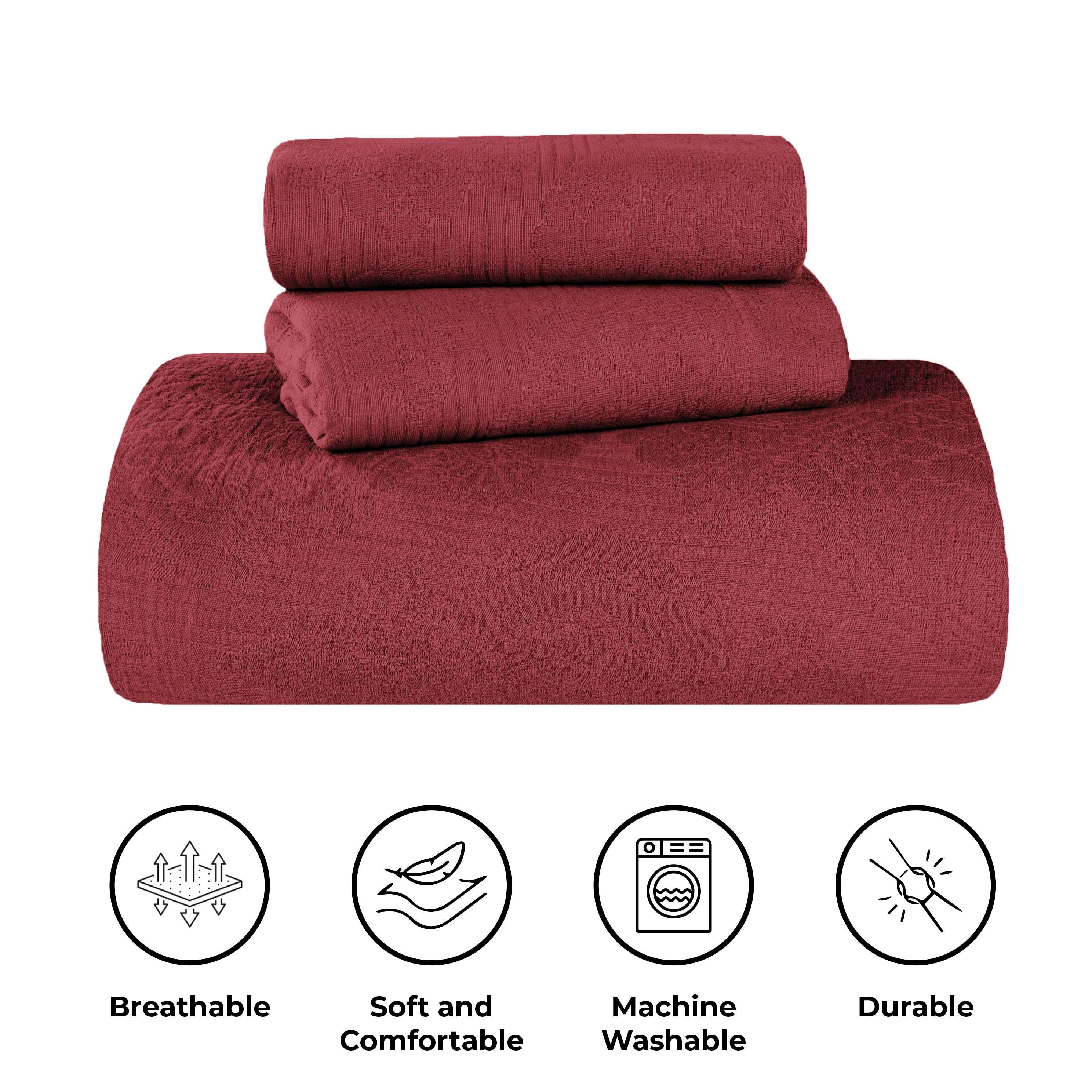 Experience the perfect blend of comfort and style with the premium Superior Victory Cotton Matelasse Bedspread and Pillow Sham Set. Crafted from 100% cotton, this light and breathable set is ideal for adding an extra layer of texture or for use on its own. The jacquard weave features an intricate scrolling medallion pattern that creates a stunning focal point in your bedroom. This gorgeous bundle includes 1 oversized bedspread that drapes elegantly to the floor, eliminating the need for a bed skirt, and 2 matching pillow shams (Twin size includes 1 pillow sham). Available in your choice of solid colors and sizes, updating the look of your modern or transitional space has never been easier.