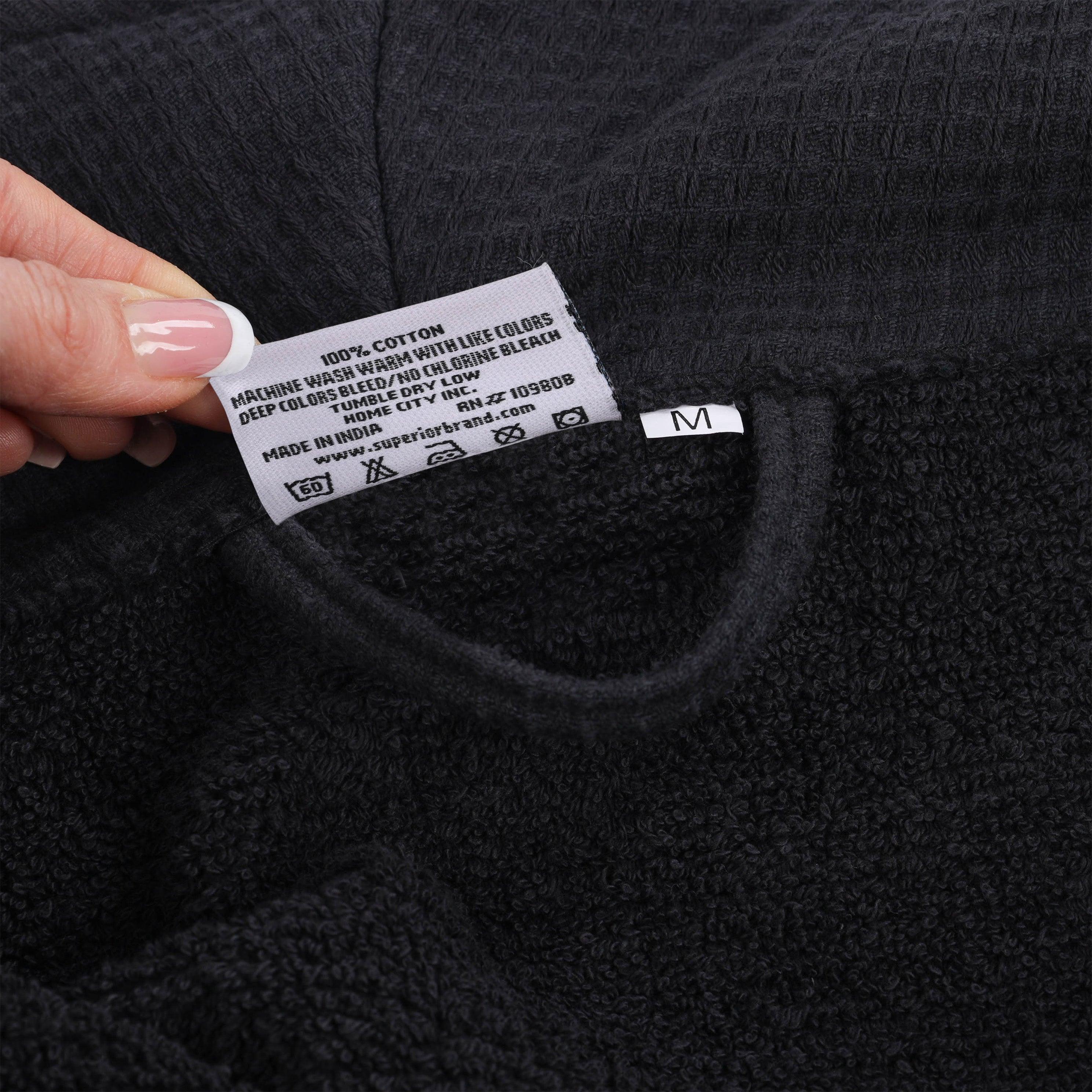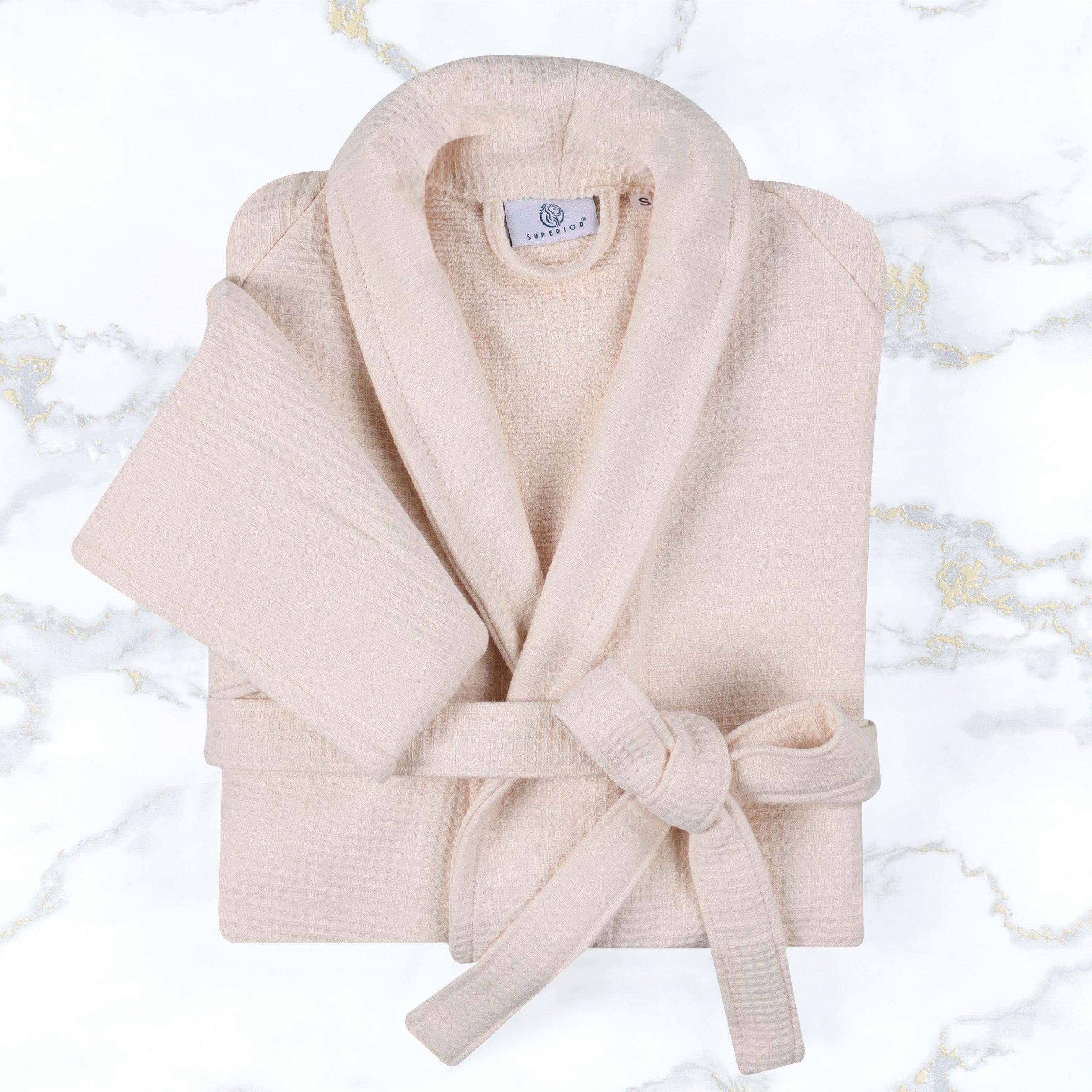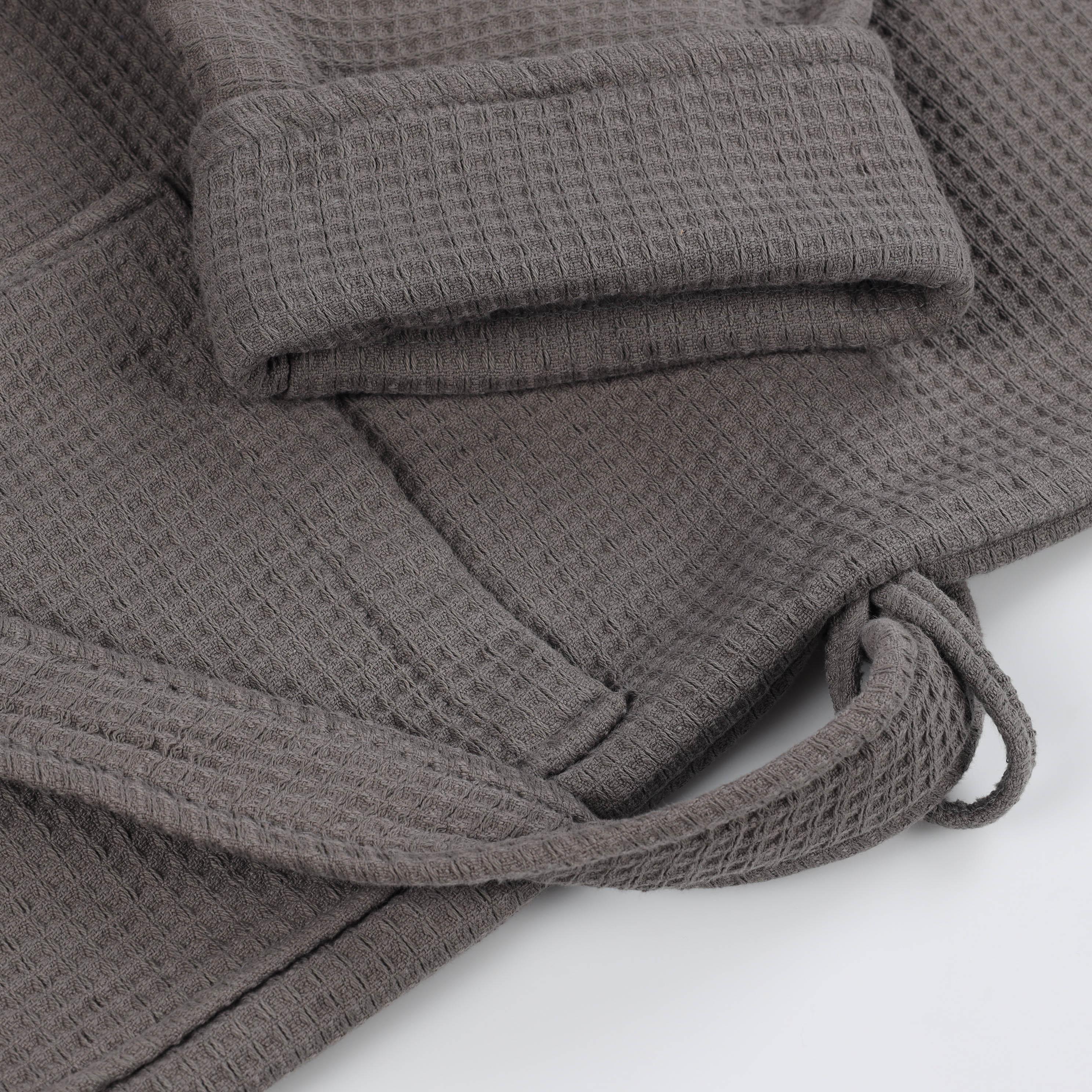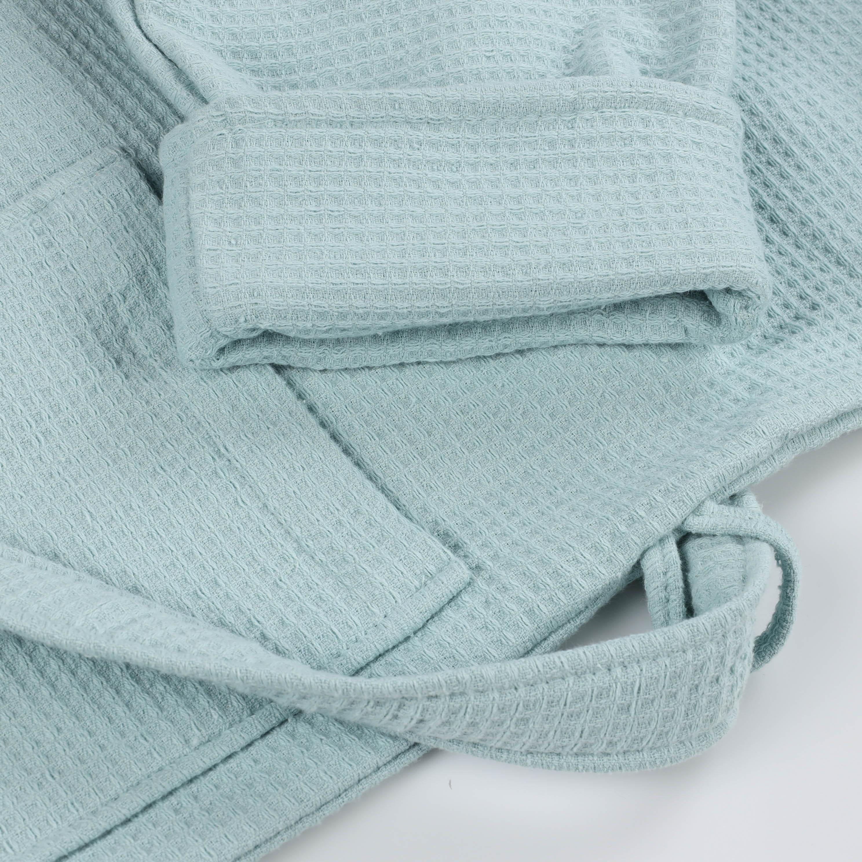 Lounge in plush comfort snuggled with our Waffle Weave Bath Robe. Crafted from ultra-soft Cotton, this gorgeous robe provides maximum comfort after stepping out of the shower or bath. This unisex adult robe is designed with a soft shawl collar, matching belt, two front patch pockets and fold-back cuffs. this unisex adult robe features a timeless honeycomb texture and solid color design. The classic waffle weave robe is highly-absorbent and has an irresistible feel. Available in a honeycomb texture in a variety of solid color options and sizes, pamper yourself every day with this plush bathrobe. This robe is also OEKO-TEX certified, meaning it does not contain any harmful substances or chemicals, ensuring quality, comfort and wellness.