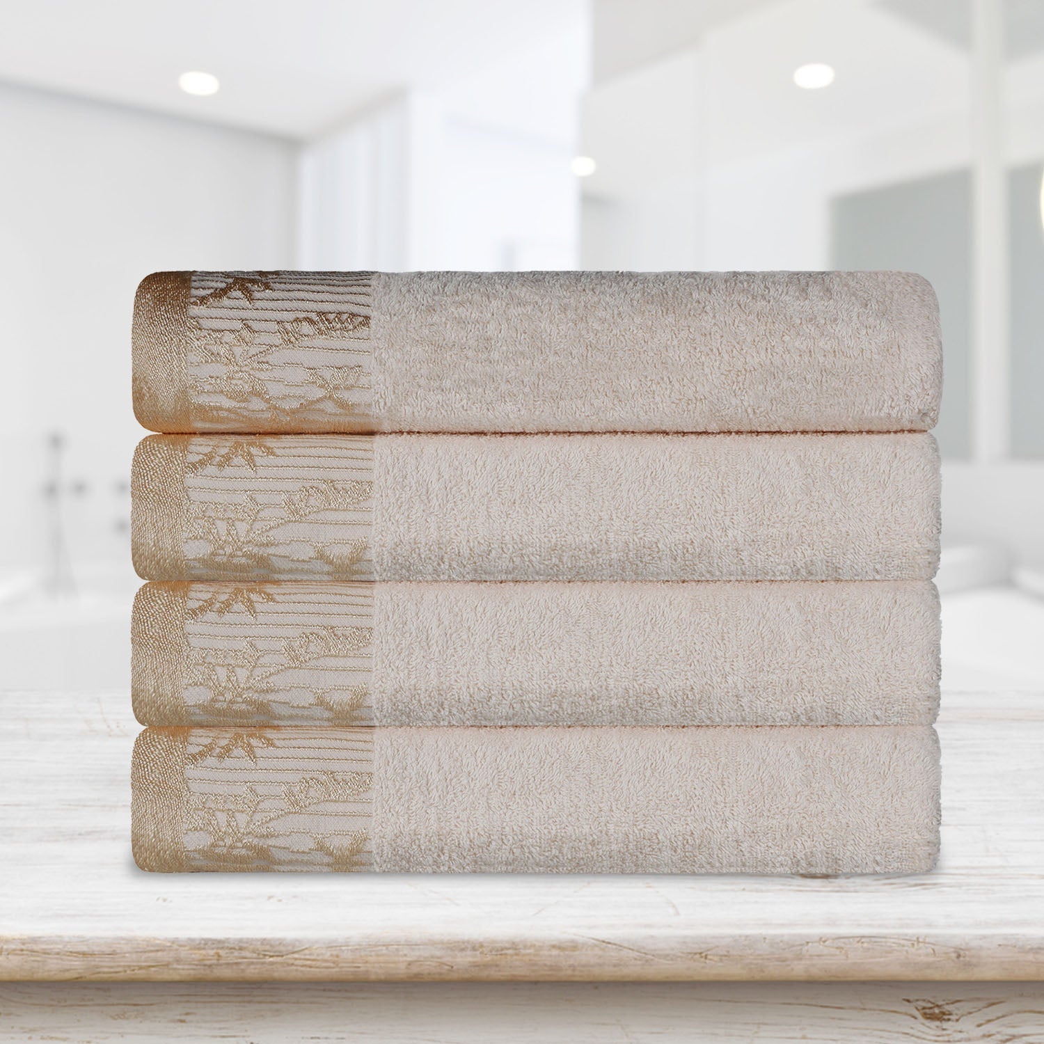 Wrap yourself in luxury every day with our Cotton Floral Jacquard Border Bath Towel Set of 4.