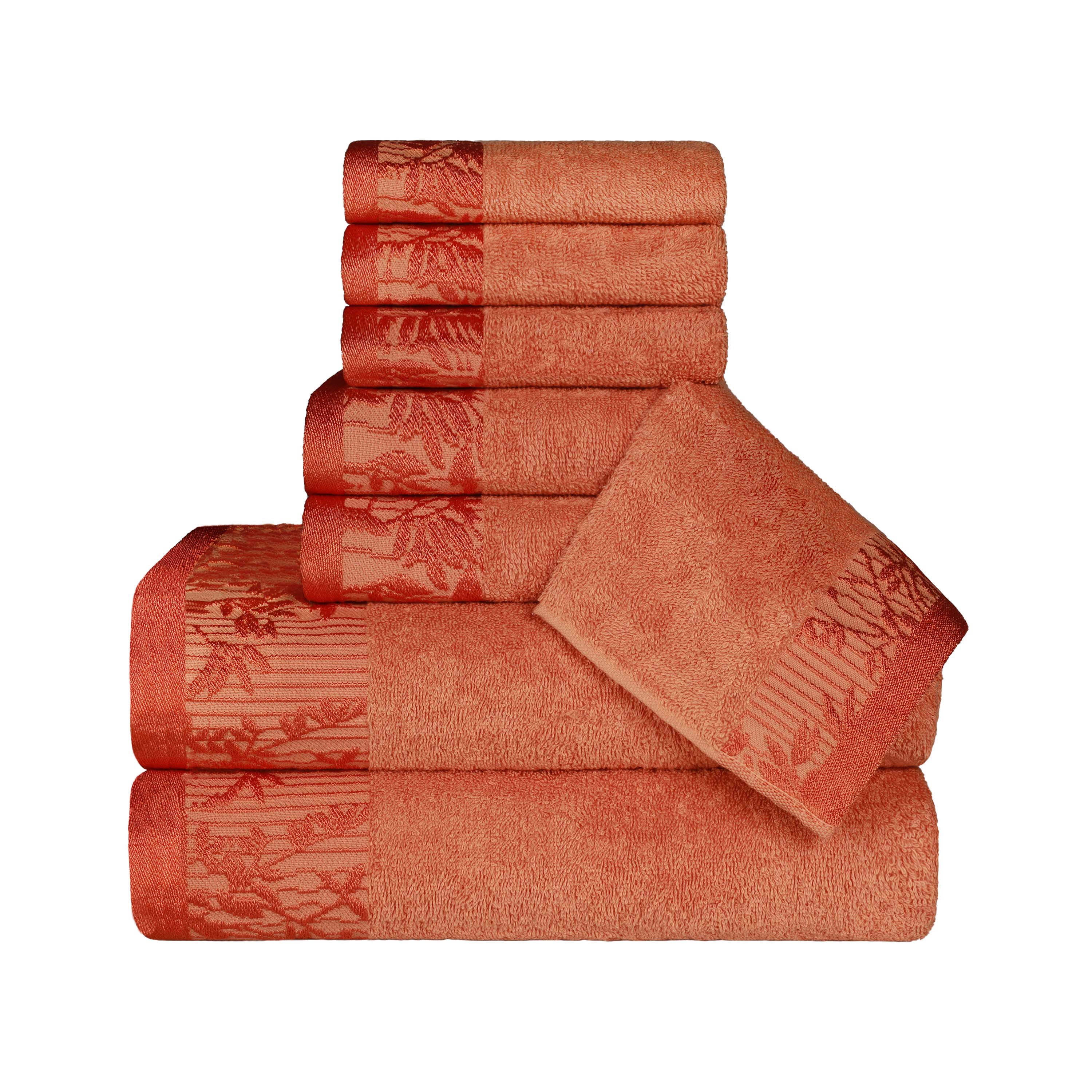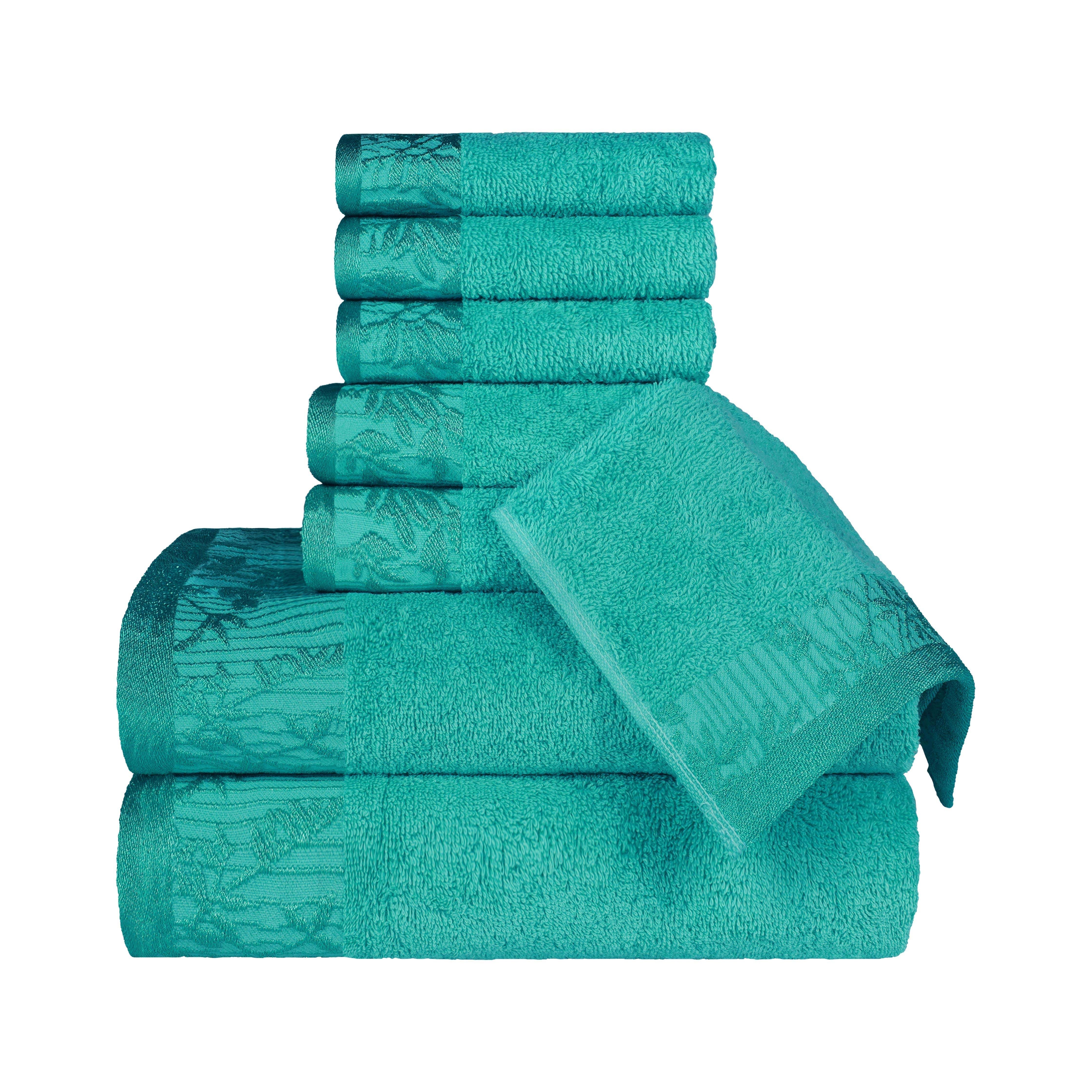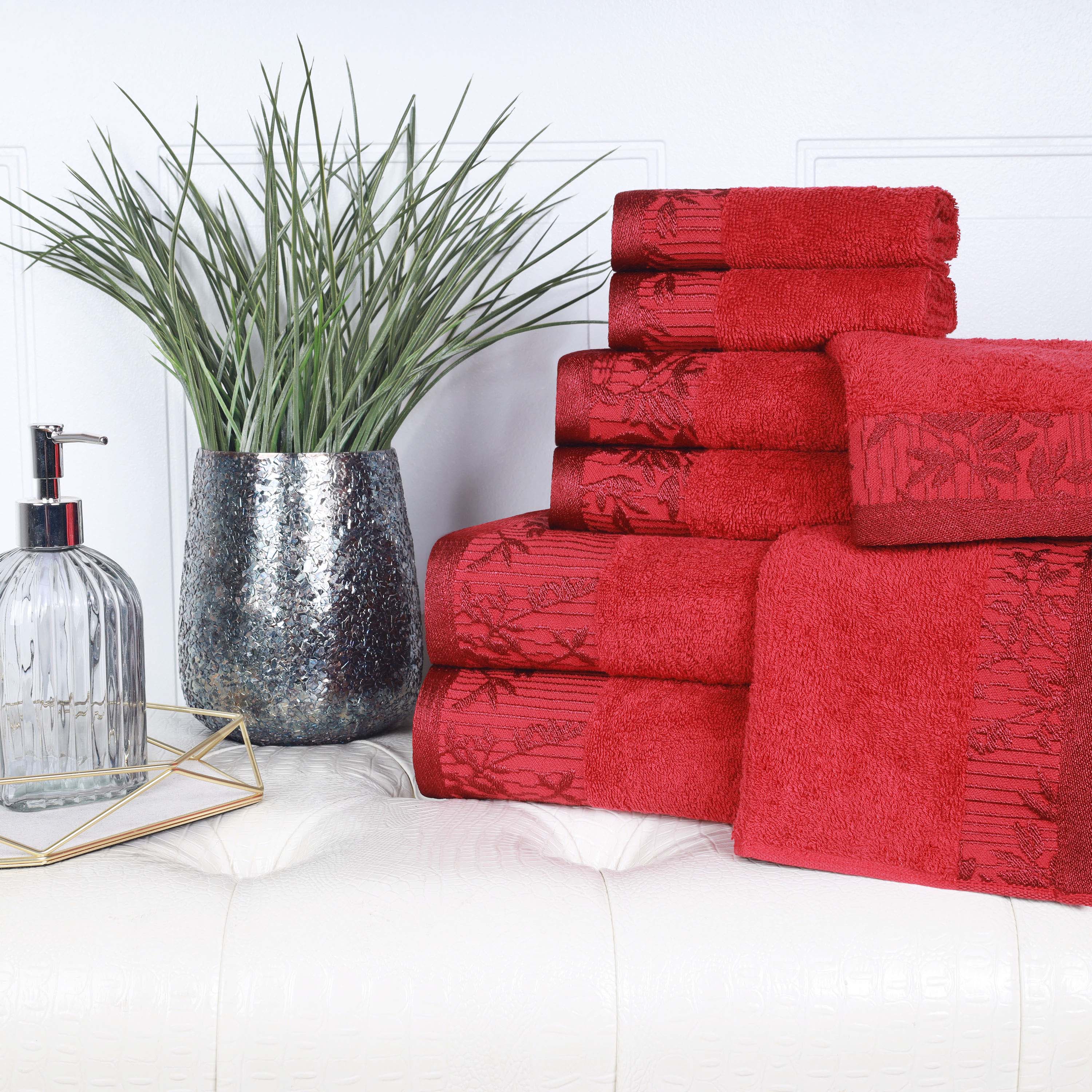 Bring a touch of nature-inspired beauty to your home with the Wisteria 8-Piece Towel Set. These decorative bath towel sets feature a stunning jacquard floral border that adds a sophisticated and stylish accent to any bathroom. Crafted from 100% cotton, this complete bathroom towel set is perfect for daily use or for impressing guests.